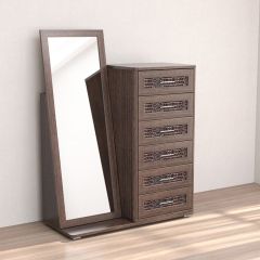 Кэт-4 Комод 6 ящ с зеркалом (МДФ Венге/Экокожа Caiman коричневый)
