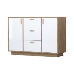 Эго К-2 Комод с 3мя ящ, 2 дв (дуб крафт золотой/белый глянец) цоколь