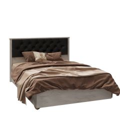 СКР-2 Кровать с мягкой спинкой (сп/м 1600*2000мм), (б/основ.), к/з черный/ЛДСП Дуб крафт белый